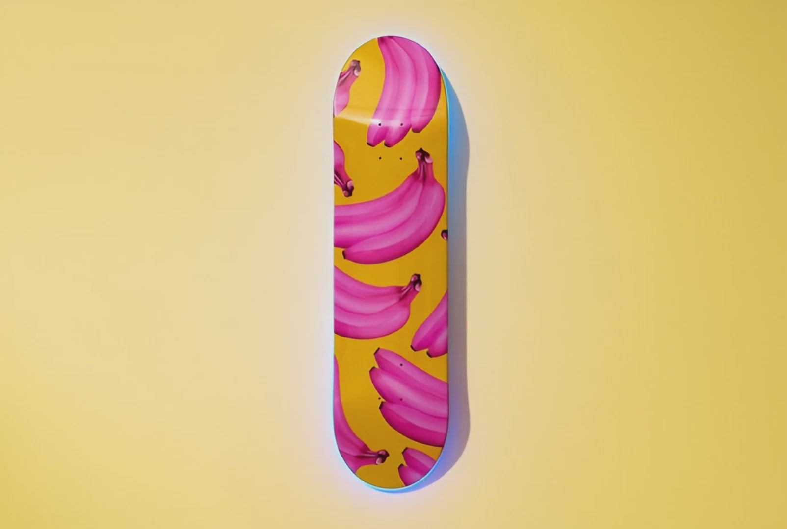 Skateboard Wall Art – Pink Banana Pop Art Deck for Modern Interior