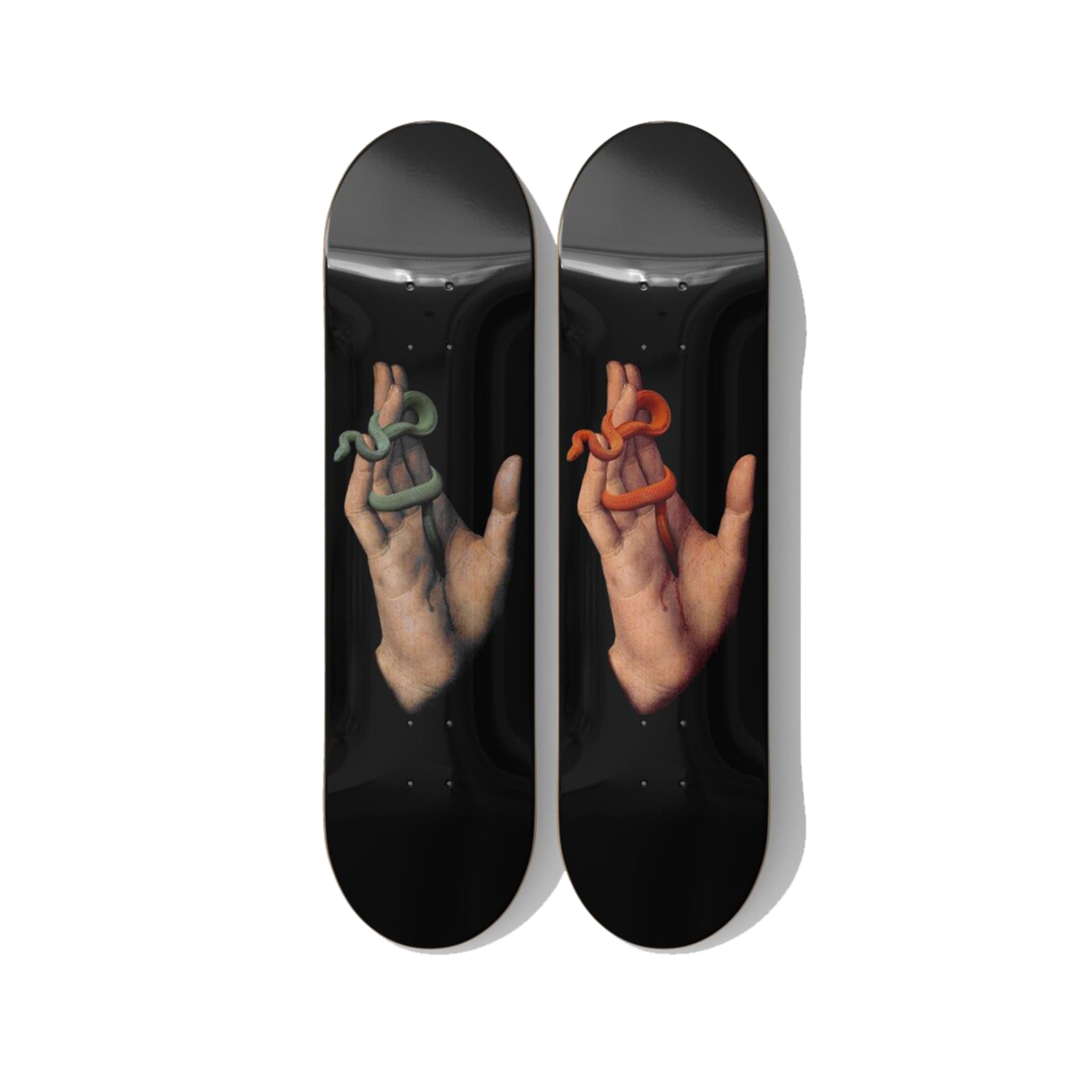 Hand with Serpent – Renaissance Surrealism Skateboard Deck Diptych Wall Art – Premium Canadian Maple Deck
