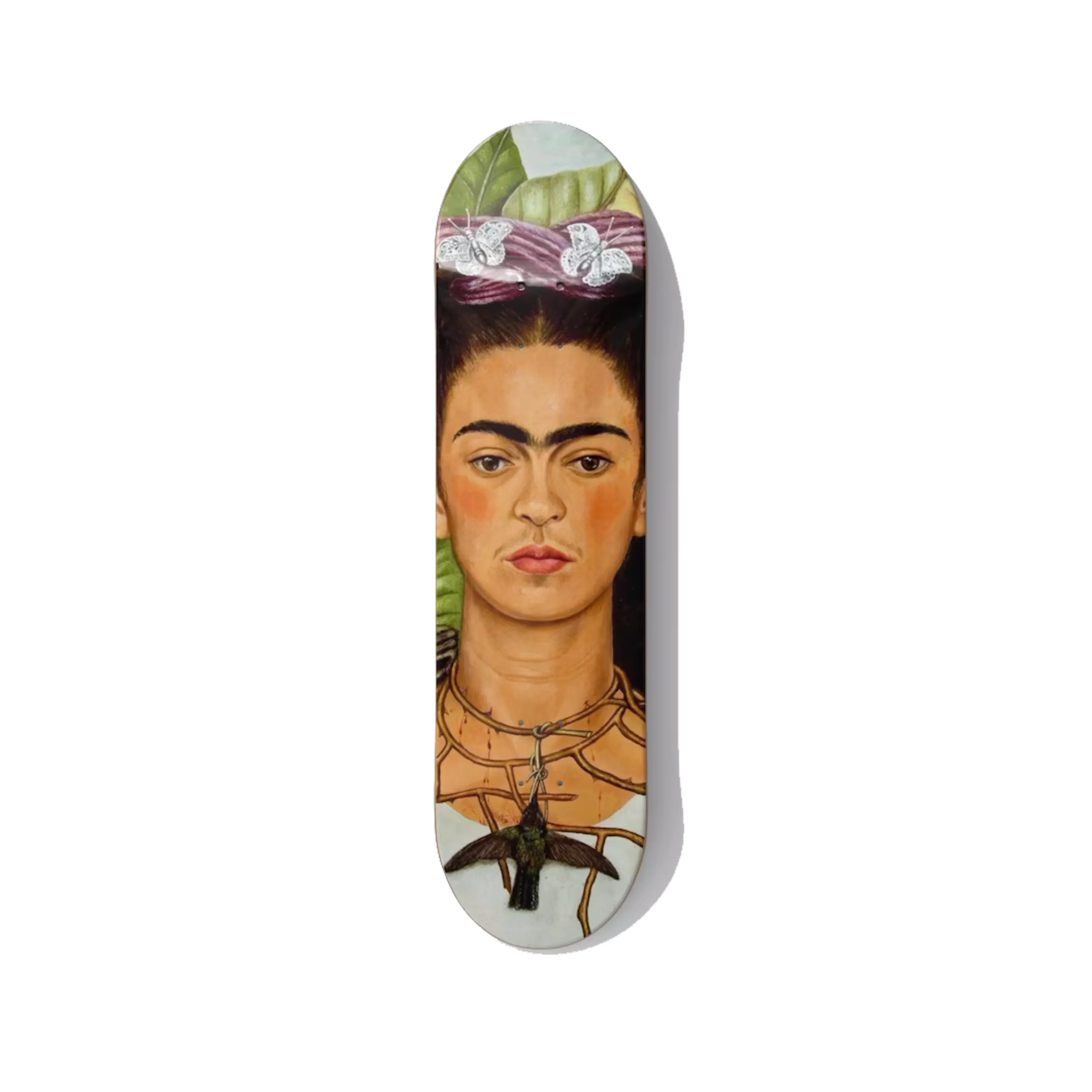 Frida Kahlo Self-Portrait with Thorn Necklace and Hummingbird Skateboard Wall Art - Premium Canadian Maple Deck