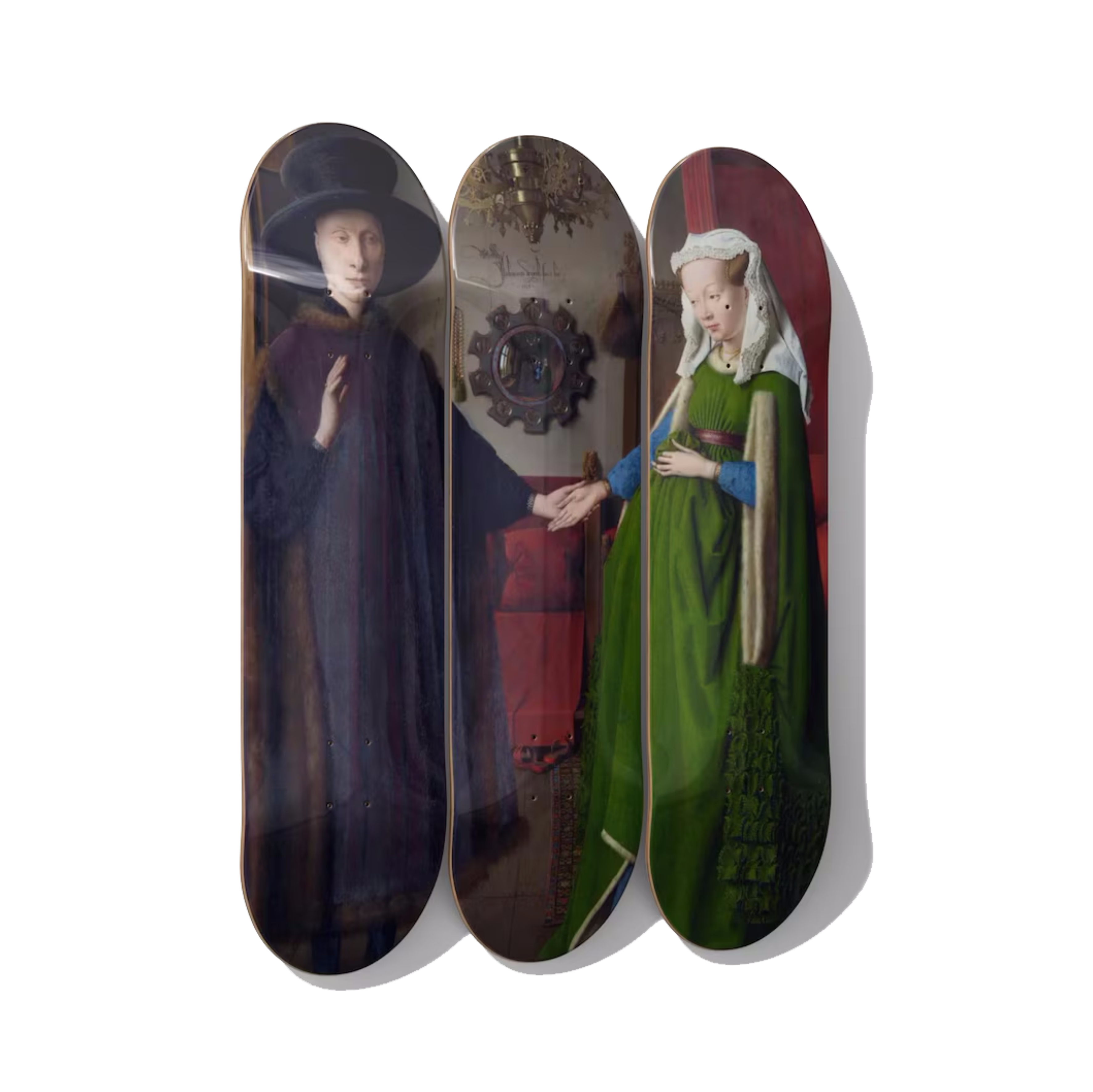 Jan van Eyck - The Arnolfini Portrait Skateboard Deck Triptych Wall Art - Premium Canadian Maple