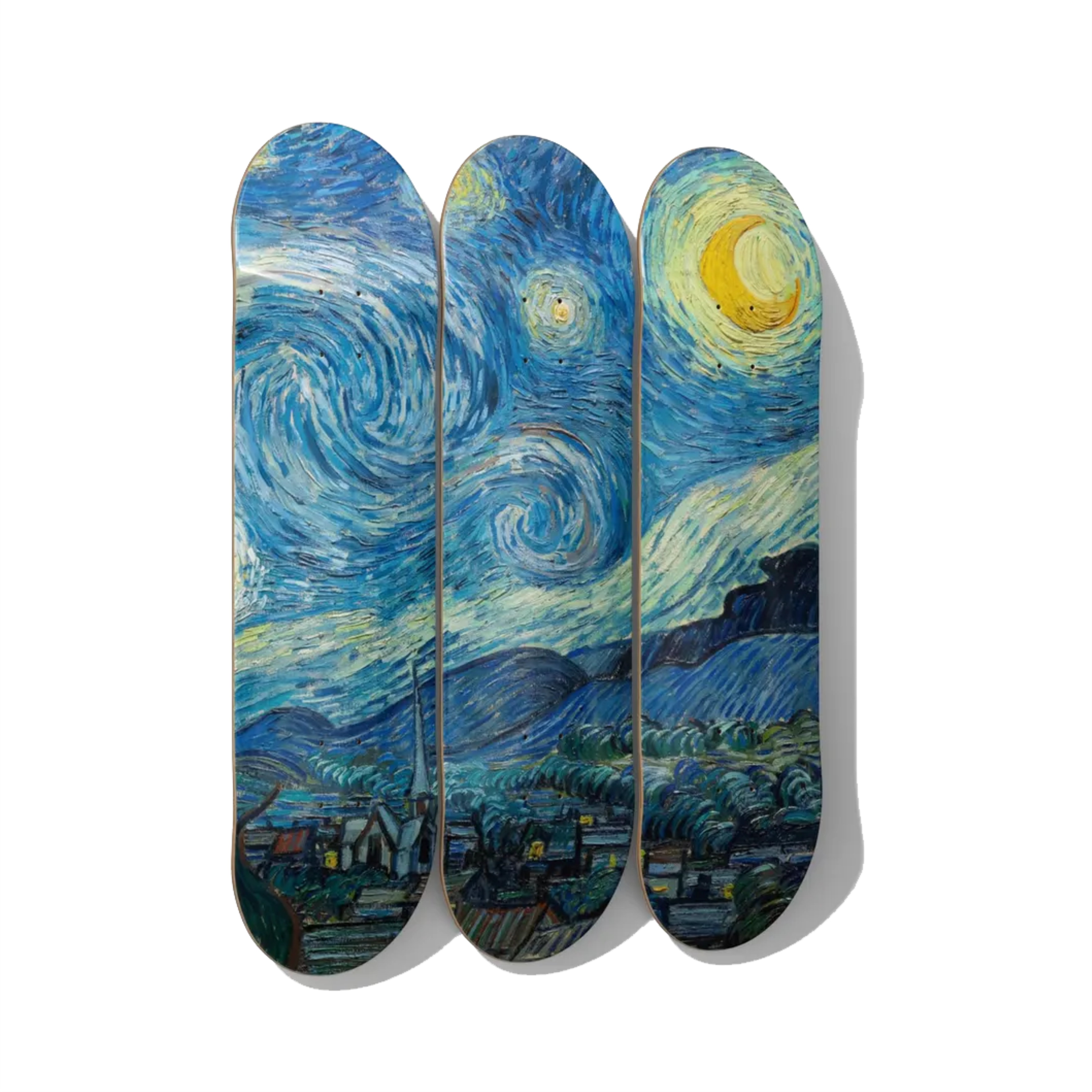 Vincent van Gogh - The Starry Night Skateboard Deck Triptych Wall Art - Premium Canadian Maple